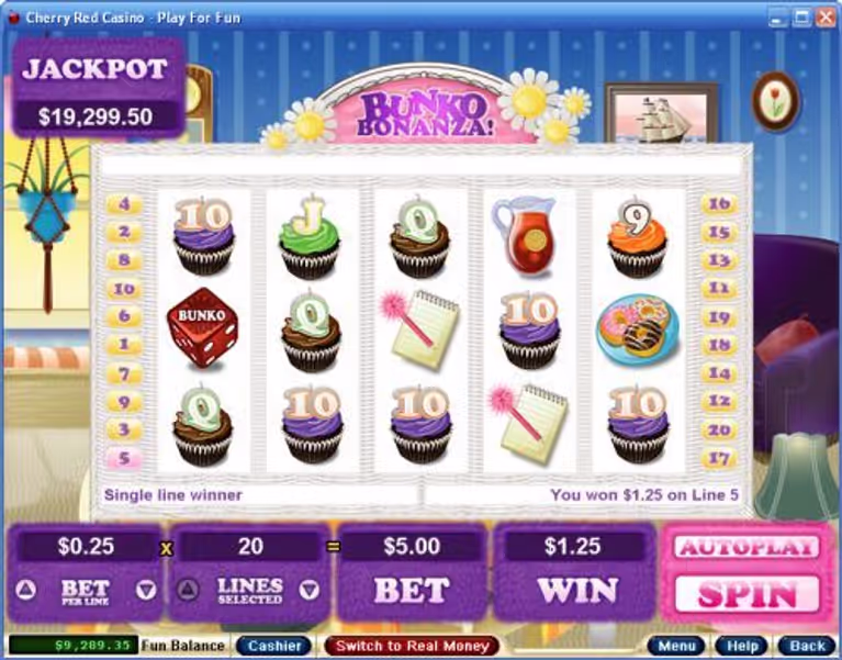 Bunko Bonanza operates on a straightforward 5-reel setup with 20 fixed paylines, making it perfect for both newcomers and seasoned slot players. Your coin options range from a penny-friendly $0.01 all the way up to $5.00 per line, with single coin betting that keeps the math simple and the action flowing.